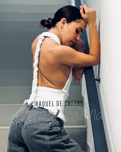 Body multiposición blanco para bailar,con dos tiras largas unidas a la cintura que puedes amarrar alrededor del cuerpo de tantas formas diferentes como se te ocurran.