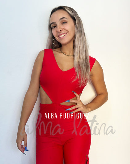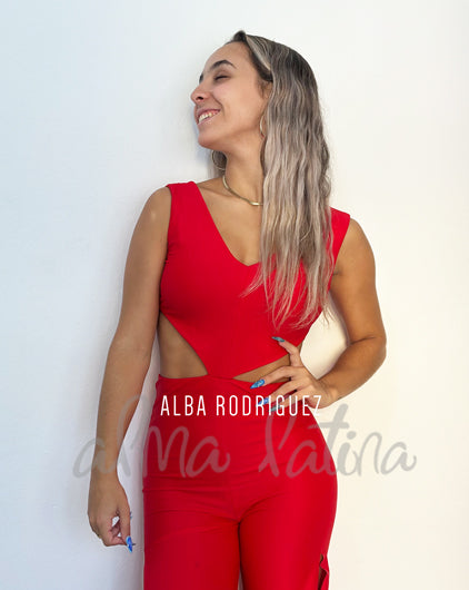 Este modelo es de estilo deportivo, ideal para ir a talleres, a clase o para hacer cualquier actividad deportiva. Es básico, de manga larga y tiene un pequeño agujero en la manga para meter el pulgar, lo que hace que las mangas queden perfectamente ajustadas y no se muevan al realizar movimientos.Este body con nudo rojo ha sido creado por Alma Latina, es ideal para salir a bailar Salsa, Bachata, Kizomba y para hacer actividades fitness. Gracias a su elasticidad, se adapta al cuerpo y te permite moverte con libertad. Es perfecto si estás buscando un mono ajustado elegante que no se mueva durante tus entrenamientos.