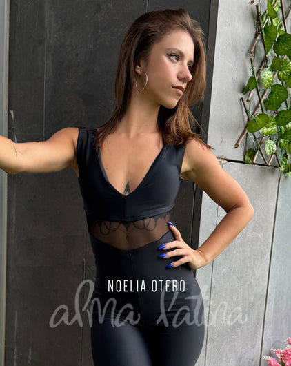 Nuestro mono más sofisticado, la transparencia en la cintura estiliza la figura y acentúa la cintura, es cómodo y tiene un escote de infarto. No querrás dejar de ponértelo, es delicado, no se mueve y puedes usarlo con sujetador.