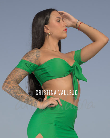 Este top lazo verde para mujer es ideal para salir a bailar Salsa, Bachata, Kizomba. Gracias a su elasticidad, se adapta al cuerpo y te permite moverte con libertad. Es perfecto si estás buscando un top de danza que te permita realizar actividades físicas sin perder elegancia ni comodidad.