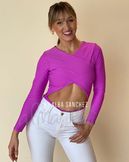 El equipo de Alma Latina Shop ha diseñado junto a Alba Sánchez ( @ronaldyalba ) este producto en su totalidad, está hecho a mano y fabricado 100% en España. Es un body DOS en UNO ya que las piezas delanteras y traseras son REVERSIBLES, puedes usarlo con el cruce bajo el pecho o con el cruce sobre la espalda. Está fabricado con licra de alta calidad compuesta por 80% Poliamida y 20% Elastano. Puedes lavarlo a un máximo de 30º y te recomendamos lavarlo a mano. Lleva copas incorporadas y cierre con botones a presión que permiten abrir y cerrar la prenda por debajo.