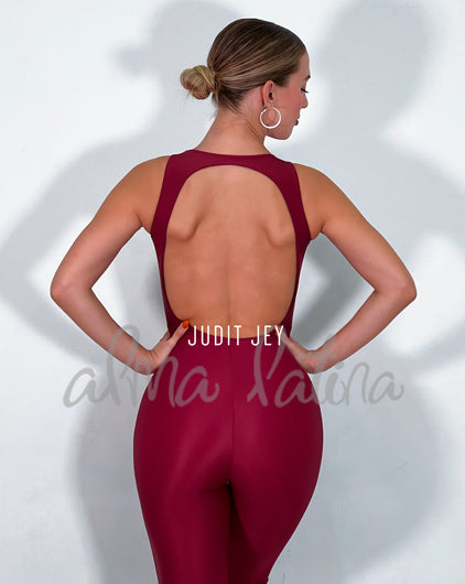 Mono burdeos para bailar, con escote en forma de corazón, manga ajustada al hombro y espalda abierta con un entramado de tiras que se cruzan. Lleva COPAS INCORPORADAS y doble tejido en la zona del pecho para evitar transparencias, esto junto a su elasticidad hace que se adapte al cuerpo y te permite moverte con libertad.