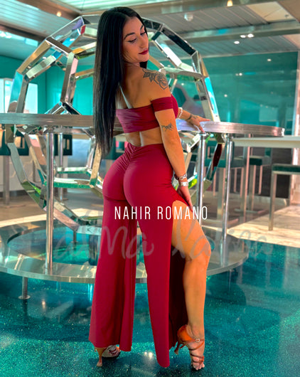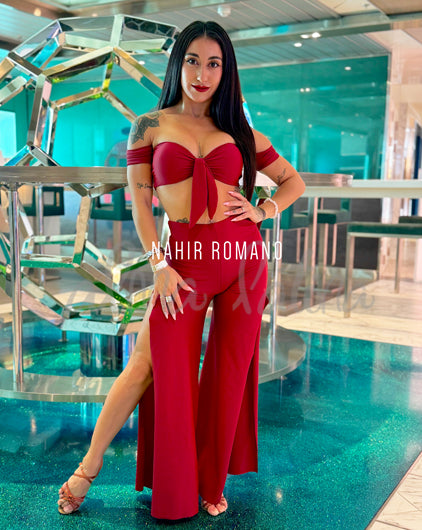 El pantalón de baile más demandado, de pata ancha, con abertura en ambas piernas, cintura alta y con fruncido en el glúteo, lista para cualquier social, combínalo con uno de nuestros tops en el mismo color para el outfit que no querrás dejar de ponerte.