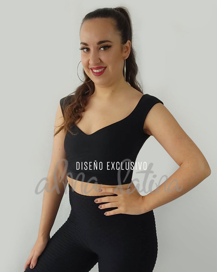 Malla de danza negra creado por Alma Latina, es ideal para salir a bailar Salsa, Bachata, Kizomba y para hacer actividades fitness. Gracias a su elasticidad, se adapta al cuerpo y te permite moverte con libertad. Es perfecto si estás buscando un top ajustado y elegante que no se mueva durante tus entrenamientos.